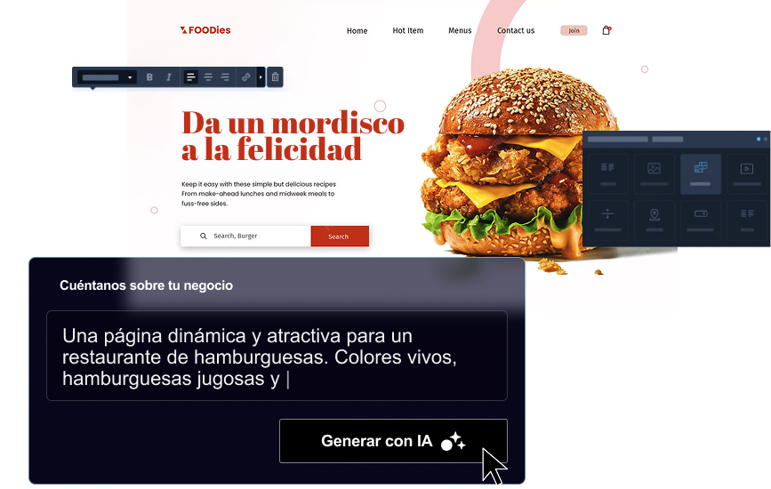 Tu Pack Dominio incluye un hosting de 1 GB con WordPress preinstalado y un Asistente del Sitio IA basado en Inteligencia Artificial que te ayuda con el diseño y los contenidos de tu sitio web. ¡Crea tu web gratis con los increíbles temas de WordPress y cuéntale al mundo qué haces!